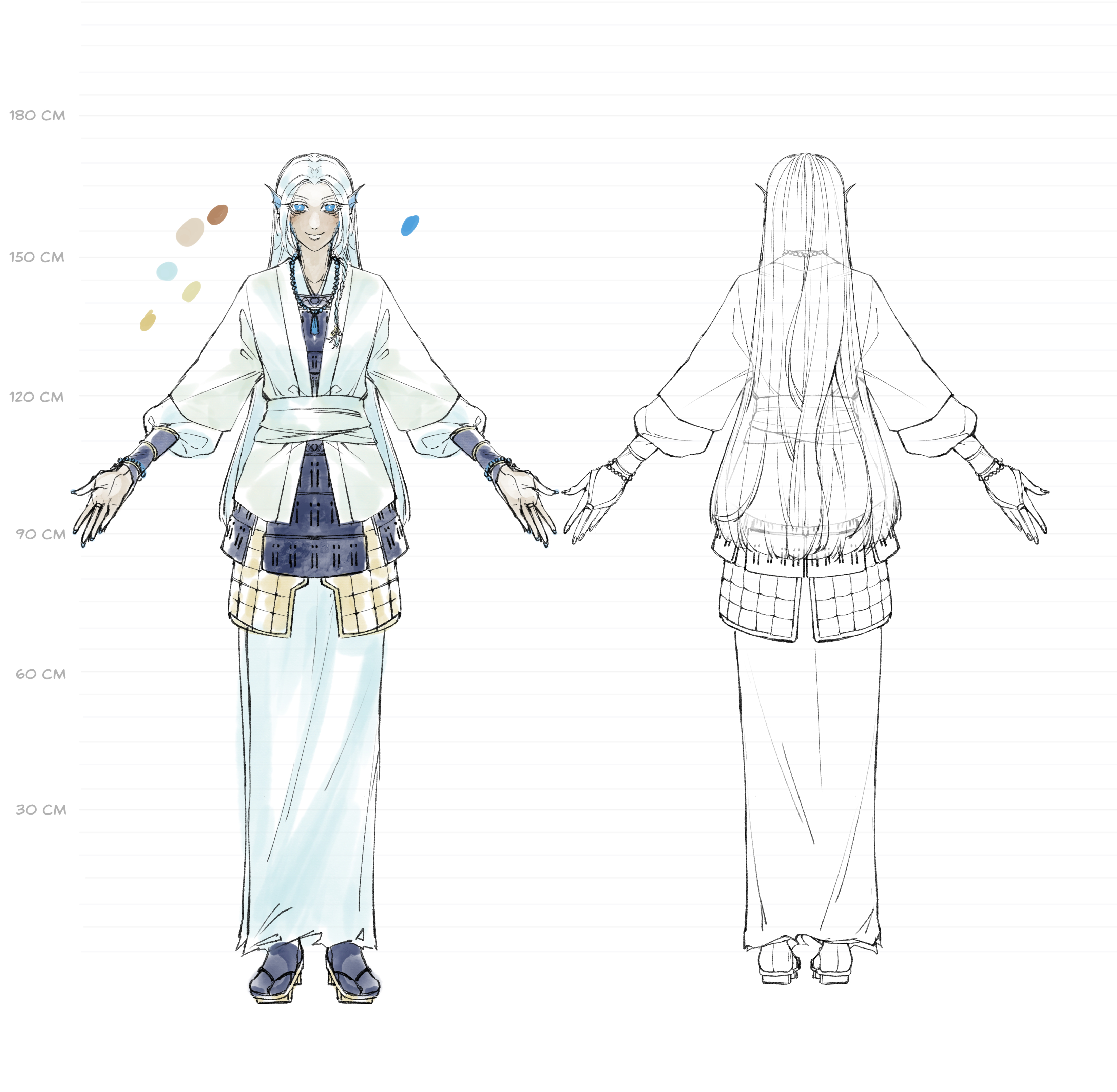 For MC, Yamato and Hikaru I took references and inspirations from Hakuouki as well, the clothing parts that were sensible to exist before the Shinsengumi’s timeline as well. Of course, the character description doc that was given to me also had references that followed.